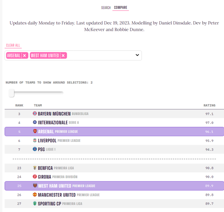 Opta Power Rankings是一个全球球队排名系统,为13000多支足球队评分,得分范围在0到100之间,其中0是世界上排名最差的球队,100是世界上最好的球队,在这场比赛开始之前,以下是双方的Opta Power排名。