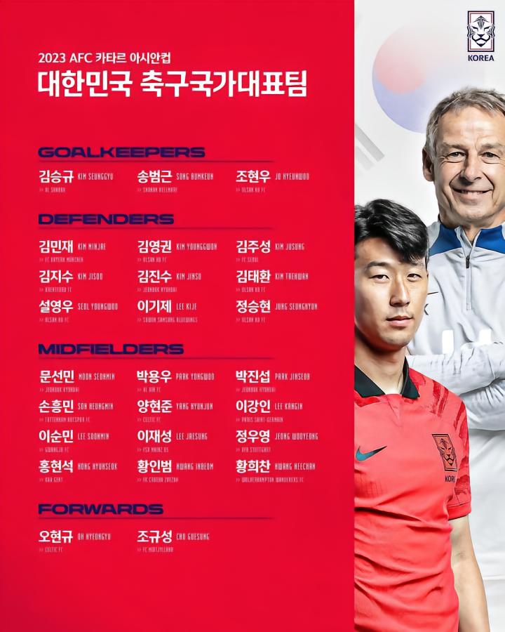 韩足晚报(2023.12.28)韩国公布亚洲杯出征名单