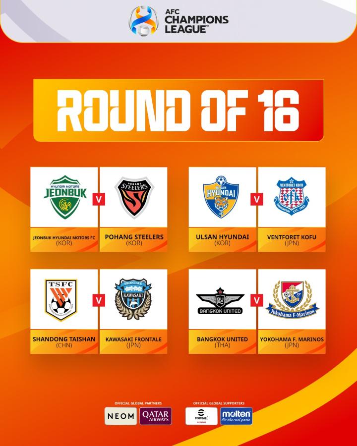 2、亚冠淘汰赛对阵:全北浦项内战+蔚山恶战黑马