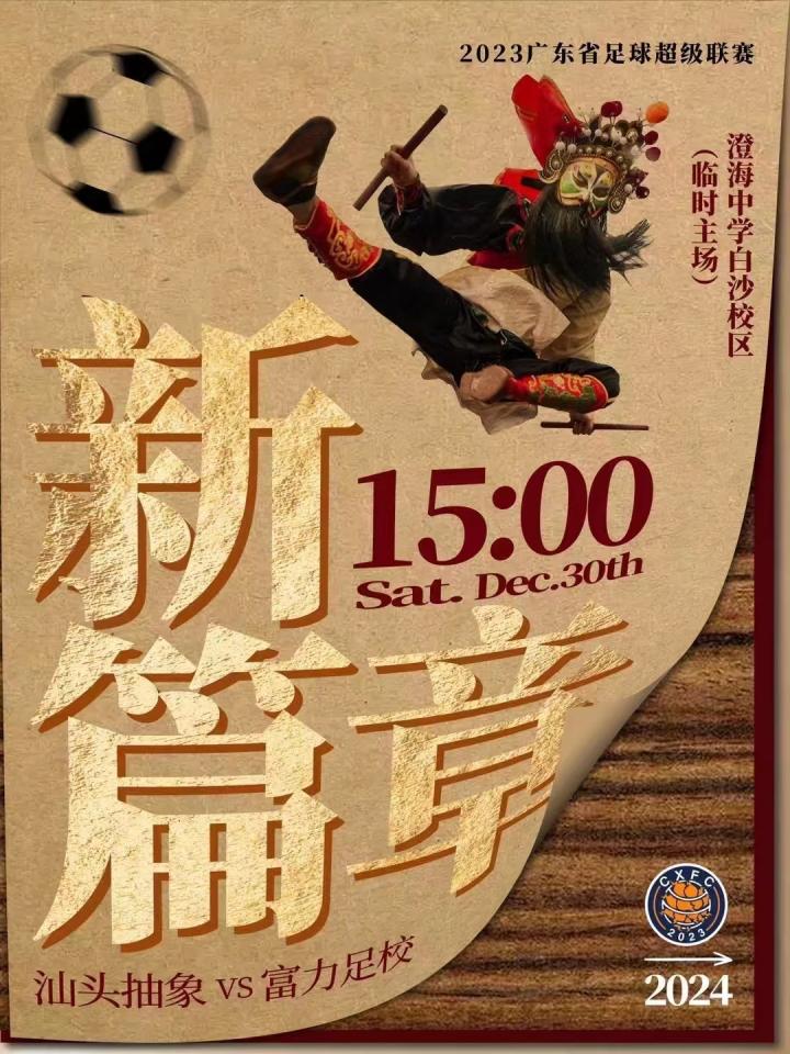 转眼间,2023-24赛季广东省足球超级联赛将在今天正式开幕,作为本次2023-24赛季广东省足球超级联赛的新军,汕头抽象将在2023年12月30日下午3:00坐镇澄海中学(白沙校区)迎战富力足校。