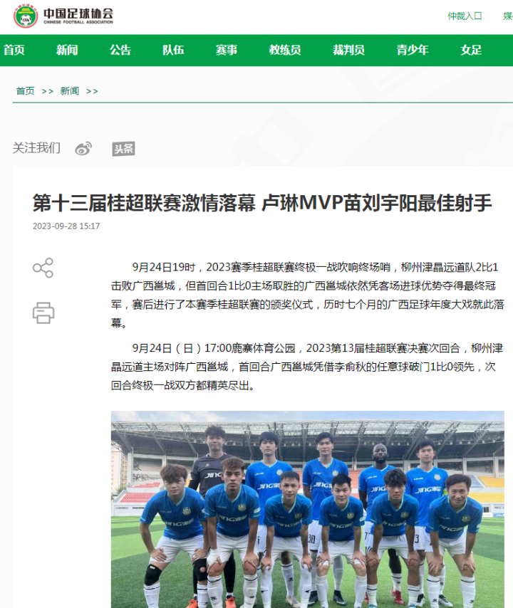 桂超联赛入选体育总局公示首批群众“三大球”共54个精品赛事案例