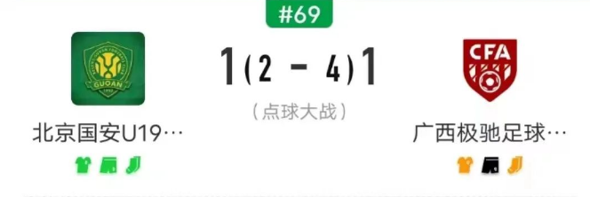 广西极驰二度狙击北京国安,继去年中国足协杯上,经过点球大战以总比分7︰5淘汰中超劲旅北京国安晋级16强,爆出大冷门。本年度广西极驰U19再战北京国安U19,又一次点球大战击败对手,致敬一线队老大哥,昨日重现,广西足球江山代有才人出。
