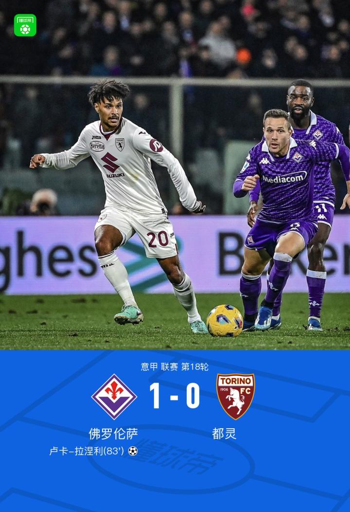 佛罗伦萨1-0都灵取3连胜,卡约德助攻卢卡-拉涅利头球绝杀
