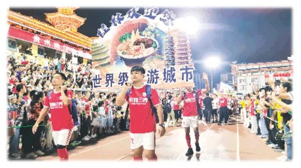 8月13日,贵州榕江全国美食足球友谊赛在贵州“村超”足球场开幕,来自全国各地的276支球队参赛,其中有16支广西球队。在之后的两个多月时间里,广西大学甘蔗汁队、桂林米粉足球队、广西南宁超龄老友粉队、柳州螺蛳粉队、梧州大营六堡茶队等先后参加了这场足球场上的美食盛宴。