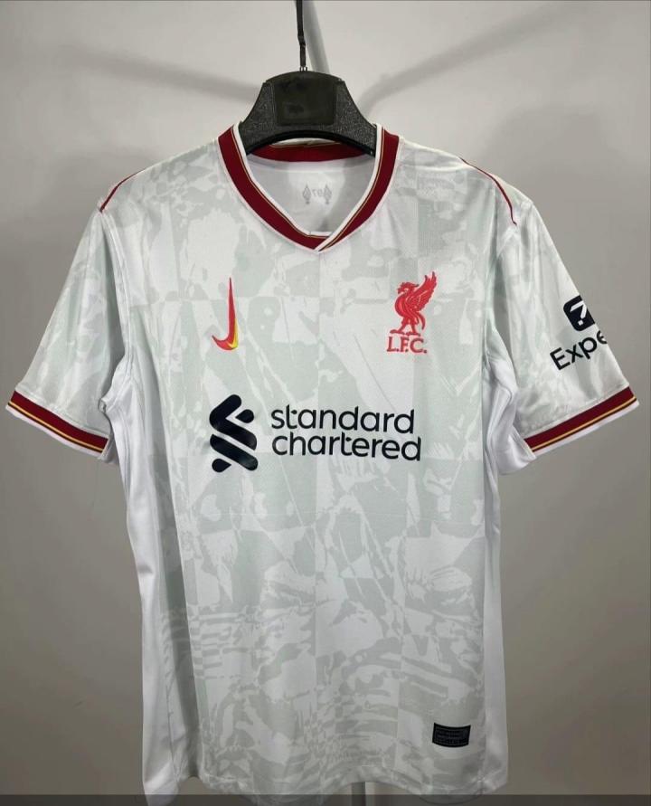 利物浦24/25赛季第三球衣谍照曝光:主体白色+全身暗纹设计