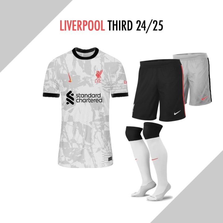 12月29日,足球装备网站FootyHeadlines曝光了利物浦24/25赛季的第三球衣谍照图片,这件球衣将以白色作为其主要配色,并搭配暗红色的条纹,与今年主场球衣的配色方案正好相反。
