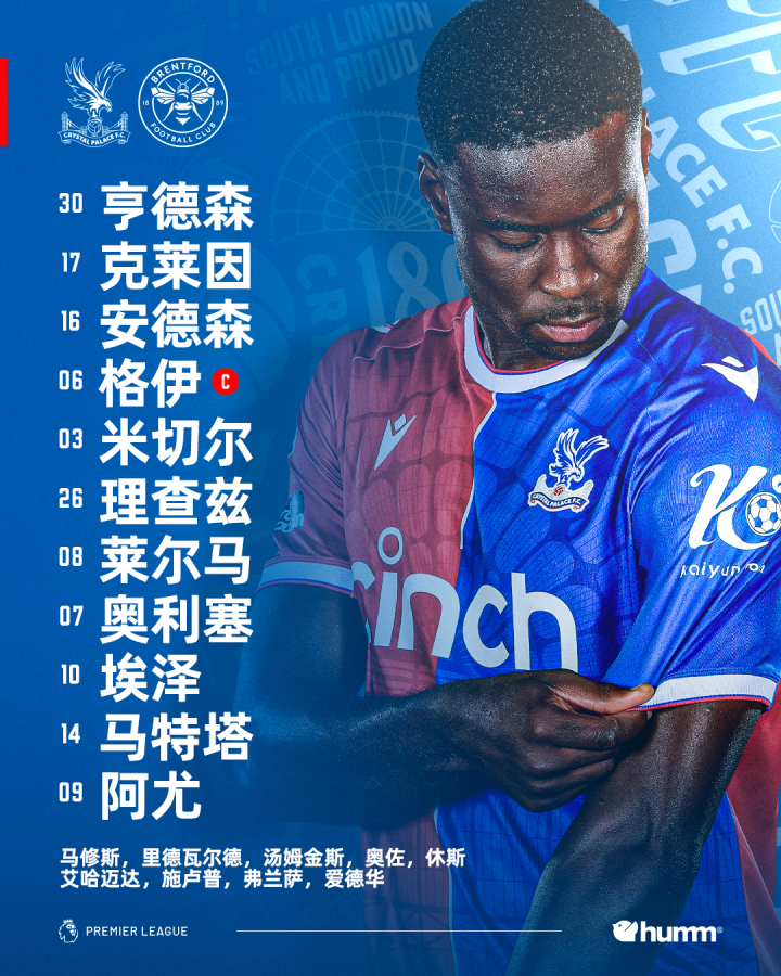 水晶宫 🆚 布伦特福德 | 首发公布 奥利塞、马特塔继续首发,爱德华替补待命