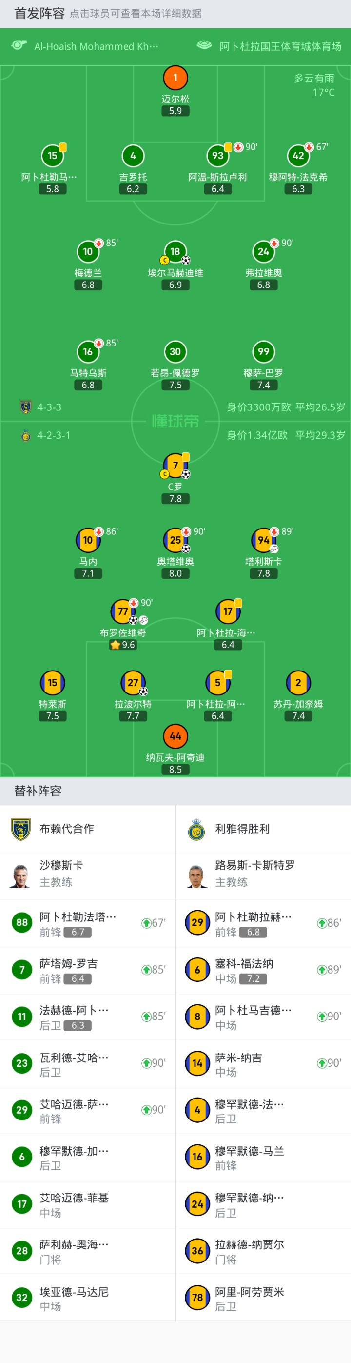 上场替补:89'6-塞科-福法纳, 90'+48-阿卜杜马吉德-苏莱希姆, 90'+314-萨米-纳吉, 86'29-阿卜杜勒拉赫曼-加里卜