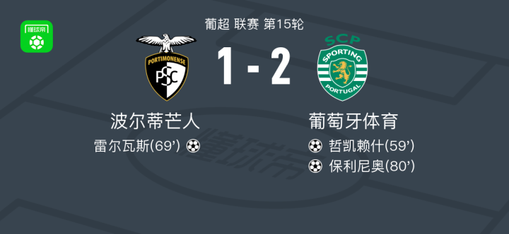波尔蒂芒人vs葡萄牙体育球员评分:哲凯赖什7.9分,Gonçalo Moura Oliveira6.2分