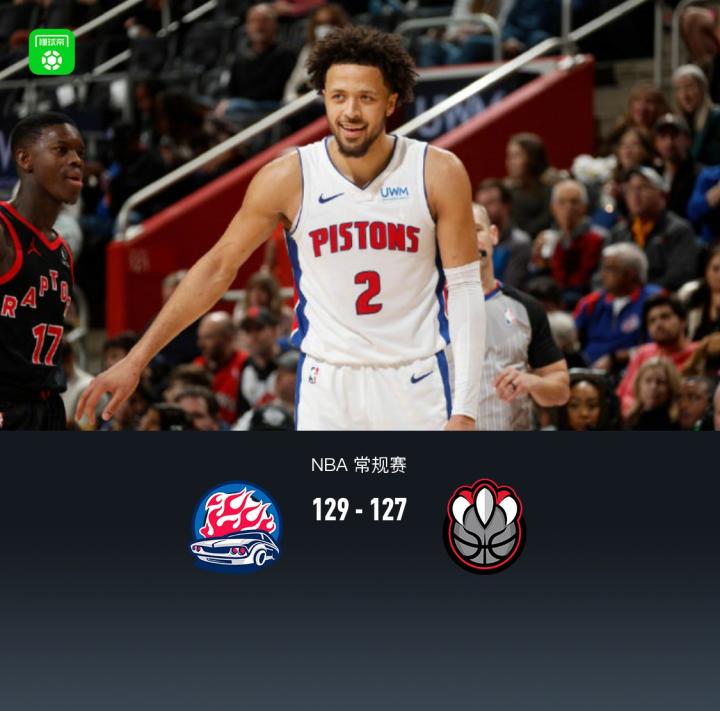 第四节活塞坎宁安拿下14分,猛龙斯科蒂-巴恩斯拿下15分,最终活塞129-127战胜猛龙