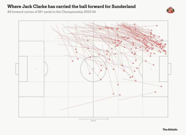 在过去的12个月里,身披红白战袍的克拉克已经成为桑德兰的进攻利器。他源源不断在左翼制造威胁,拉扯并折磨英冠球队的边后卫。