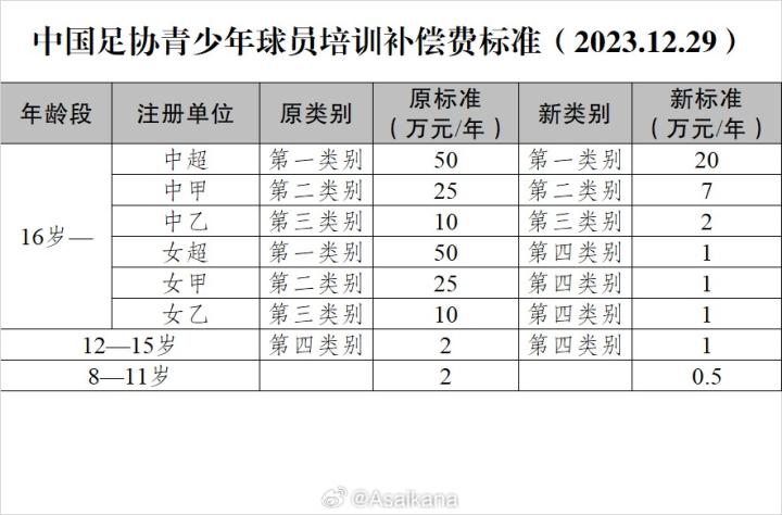 官方:足协大幅降低了青少年球员转会时的青训补偿计算标准