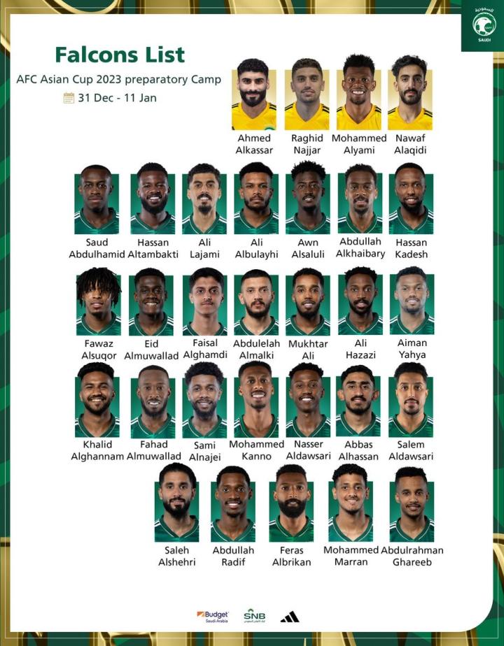 沙特国家队公布亚洲杯30人初选大名单:球员全部来自沙特联