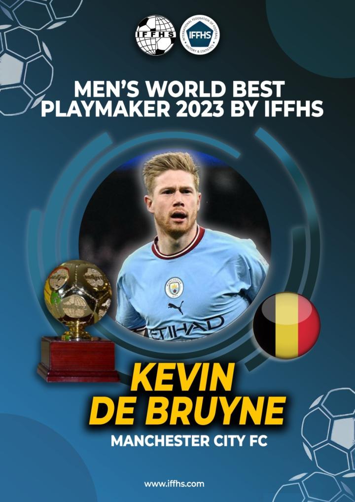 德布劳内以181分击败梅西(100分),当选IFFHS2023年度最佳组织核心。