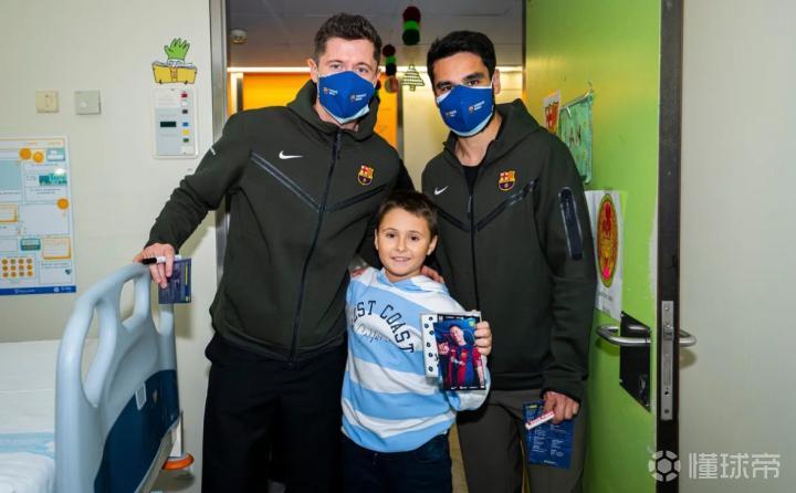 巴萨组织队员参加医院看望儿童活动,罗克加入其中
