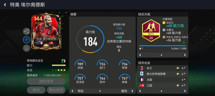 特奥的基础能力值同样给到了144,配备角斗士天赋之后,他在攻防两端的表现都有了极大提升,技术能力更加全面。