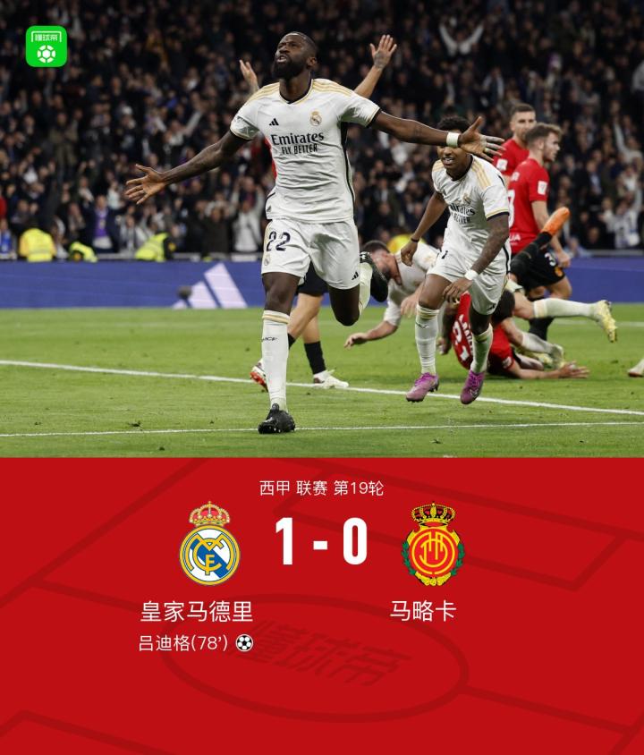 剑南春|皇马1-0马略卡取4连胜,吕迪格头球一锤定音