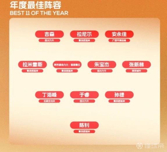 中场:拉米雷斯(青岛西海岸)、阿布都合力力(青岛西海岸)、朱宝杰(四川九牛)、张新林(南京城市);