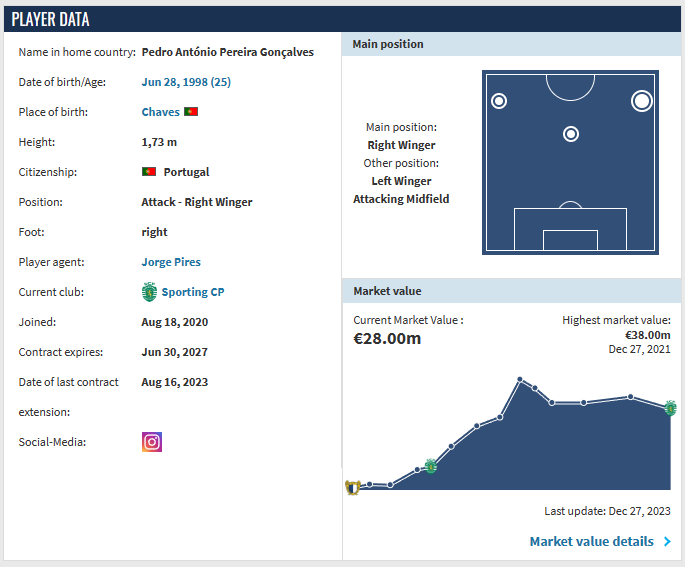 现年25岁的贡萨尔维斯并不是什么未来之星,而是一名早就在几年就频繁与各大豪门联系在一起的热门转会绯闻对象。在葡萄牙体育绝对的中前场核心地位以及赛季进球和助攻都能够上双的优异表现已经可以说明他的价值,不过这么多的转会传闻直到2023年都没有更多的下闻。但从另一个角度来说,前往其他豪门俱乐部效力不一定能够获得在葡萄牙体育那样绝对的核心地位,也可能会存在适应性的问题。对于25岁的他来说,这两年可能会是职业生涯的一个拐点,是去往豪门更多的展现自己还是留守葡体都取决于自己的选择。