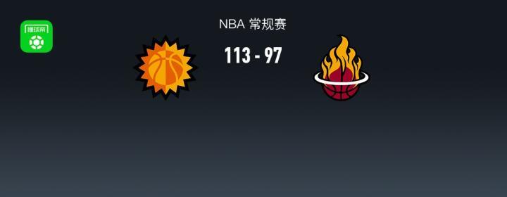 第四节太阳尤班克斯拿下5分,热火阿德巴约拿下7分,最终太阳113-97战胜热火