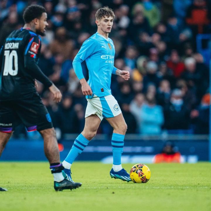 曼城青训小将雅各布-赖特的一线队首秀:2024年1月,18岁的他在足总杯第三轮对阵哈德斯菲尔德的比赛中下半场替补出场,完成一线队的首秀。 雅各布是一位出生在曼彻斯特的蓝血人,他在8岁时就加入了曼城青训,并在22/23 赛季转入曼城U18 岁以下球队,因为表现进步神速,每个赛季都在升级,本赛季他才刚刚成为EDS(曼城U21)的后腰,1月就迎来了一线队首秀。