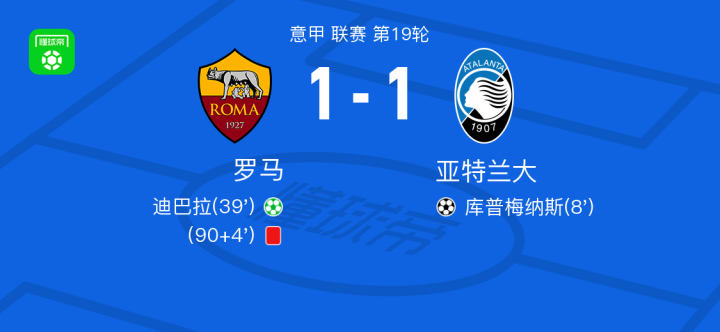 北京时间1月8日罗马vs亚特兰大,卡尔内塞基得到全场最高的8.1分,鲁杰里得到全场最低的6.2分