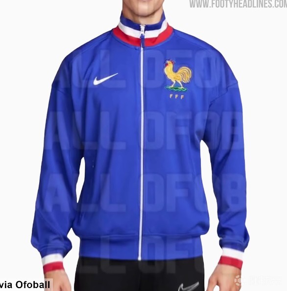 足球装备网站FootyHeadlines曝光了法国队2024年欧洲杯主客场球衣谍照,球衣胸口的雄鸡更大并且被涂上了颜色,颇有古典气息。