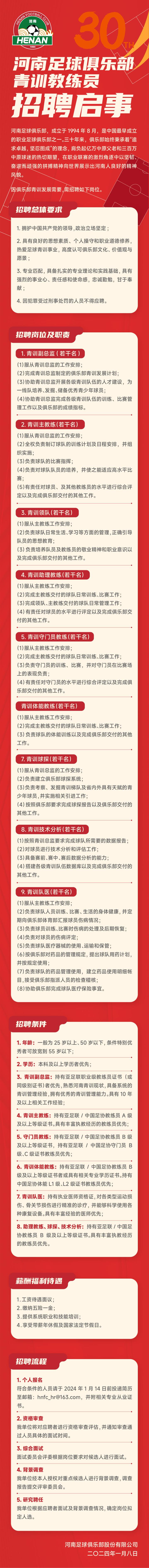 河南足球俱乐部青训教练员招聘启事