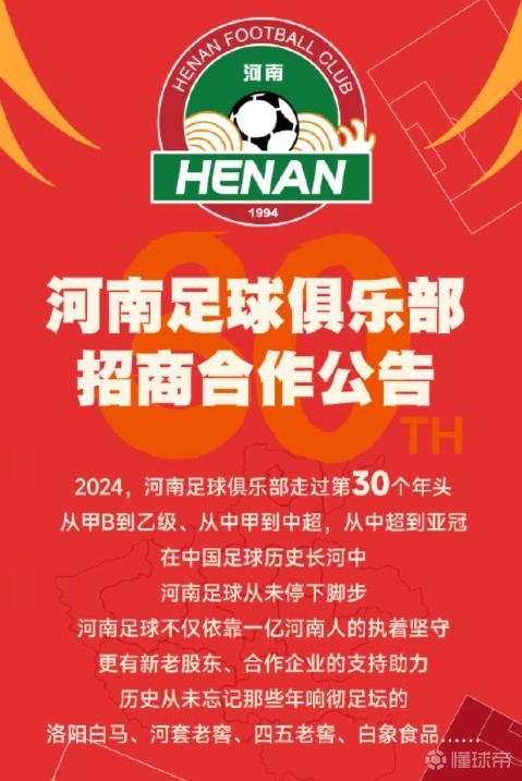 1月8日,河南队发布公告,宣布开放球队冠名权,并希望各方企业能够支持助力河南足球。具体方式为“河南XX足球队”(XX为不超过4个字的企业商号)。另外,河南队球衣的前胸、后背、袖口三个广告位也都同步对外招商。往年,这些多用来品牌自宣的广告位,如今都要实打实的用来挣钱了。在目前的大环境下,让俱乐部的股东长期大额投入并不现实,俱乐部需要多元化经营,逐步增强自身造血能力,保持可持续发展。