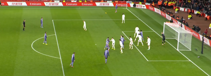 本篇主要关于任意球丢球。在丢球前的一个角球防守中,阿森纳小禁区内区域防守的结构与往常一样,只是人员配置上因为富安和热苏斯均不能上场还更换成了基维奥尔。