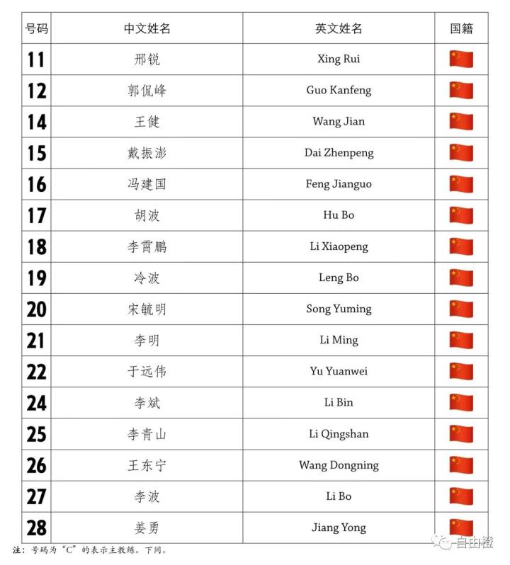 下附赛程和大名单
