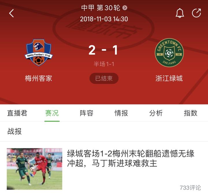 尽管传闻满天飞,但直到最后一轮,浙江队依然还有很大的冲超希望。2018年最后一轮中甲联赛,浙江绿城在赛前领先深圳佳兆业队1分,排名积分榜第二,这意味着只要最后一轮客场战胜梅州客家,就肯定能以第二名的身份冲超。