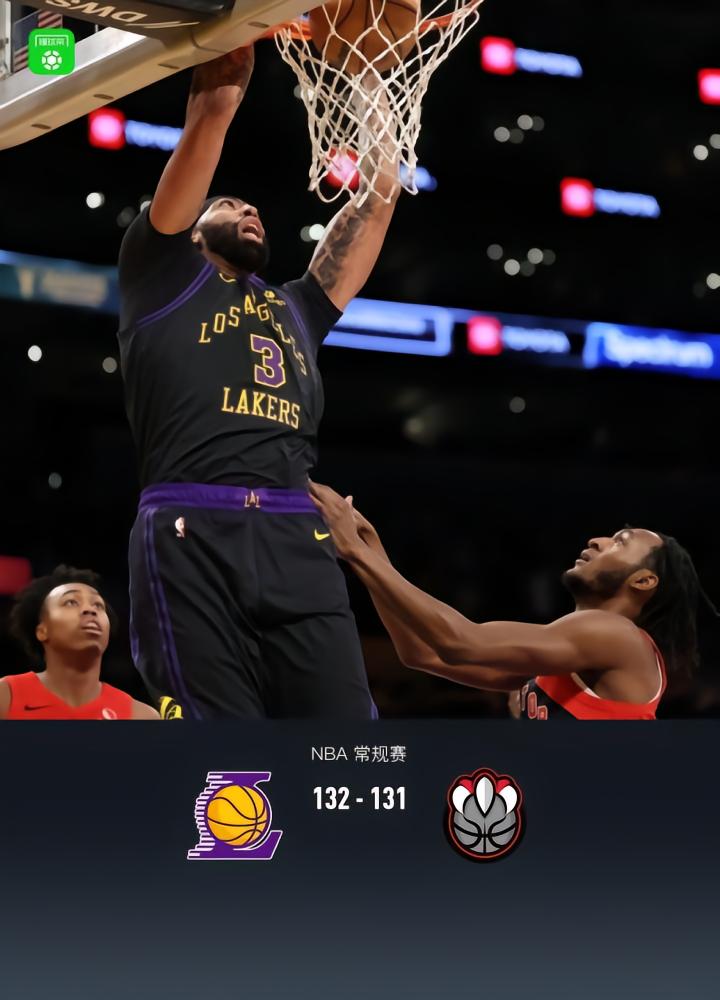 NBA战报:湖人132-131险胜猛龙,戴维斯41+11+6,老詹22+5+12