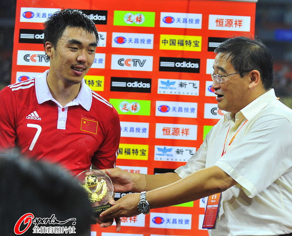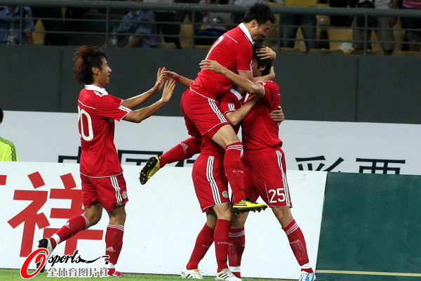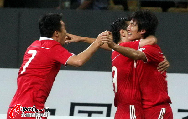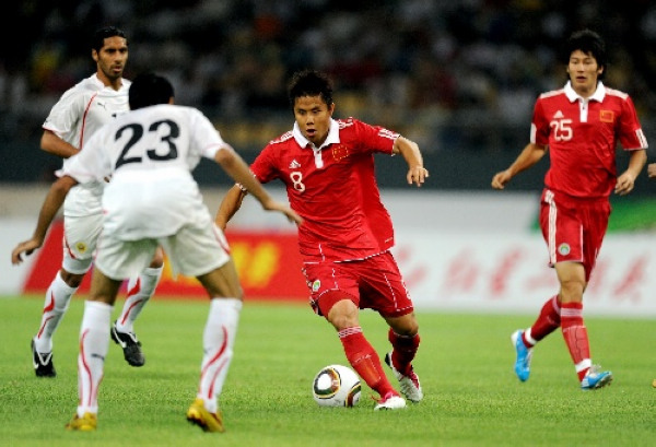 (于海国家队11粒进球合集,视频的第五球,2010年8月11日,于海攻入广西体育中心落后的首粒进球,中国队1-1巴林队)