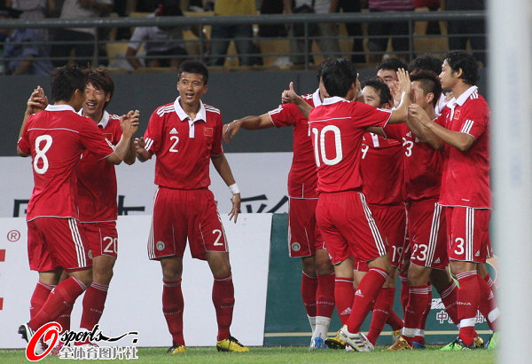 中国国家队出场阵容(4-5-1):1-杨智(46’22-曾诚)/20-荣昊、15-杜威(46’4-赵鹏)、3-7汪强、2-何扬/23-闫相闯(53’16-于汉超)、19-杨昊(53’17-张琳芃)、10-邓卓翔、7-赵旭日、25-于海(81’14-冯仁亮)/8-蒿俊闵(71’18-朱挺)