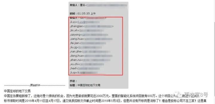 在中国足协搬到世东国际大厦之前进行前期装修的时候,2018年4月29日、6月5日,中国足协工作邮件组先后收到了匿名信。4月29日的匿名信标题是《中国足球协会智能化弱电系统改造工程存在重大问题情况通报》。6月5日匿名信的标题是:《中国足球的地下交易》。两封匿名信,内容都指向了中国足协新办公楼装修工程的智能化系统项目招标。这项招标的标的是650万元。