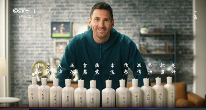 也上中央一套了,梅西代言的酒广告登上了CCTV1