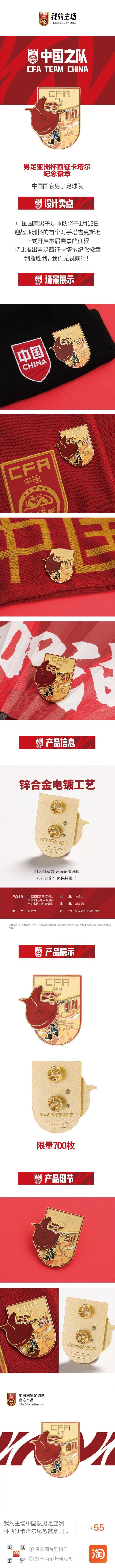 国足亚洲杯纪念徽章现已开启预售,限量700枚,价格55元