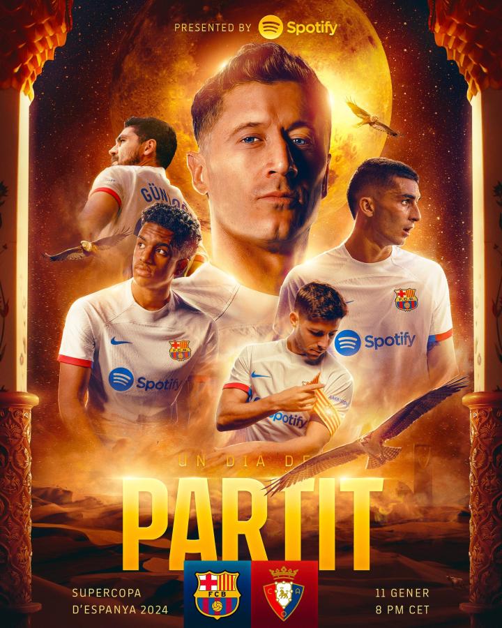 西超杯半决赛,巴萨将对阵奥萨苏纳,赛前,巴萨官方发布比赛海报。