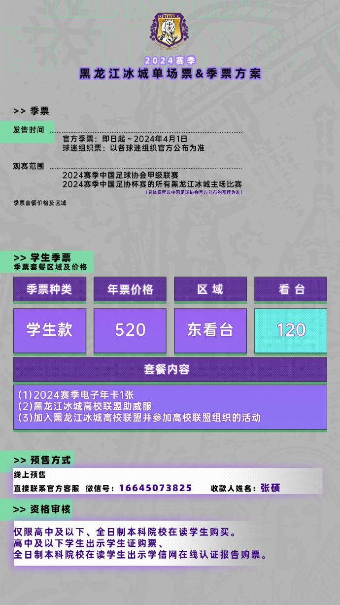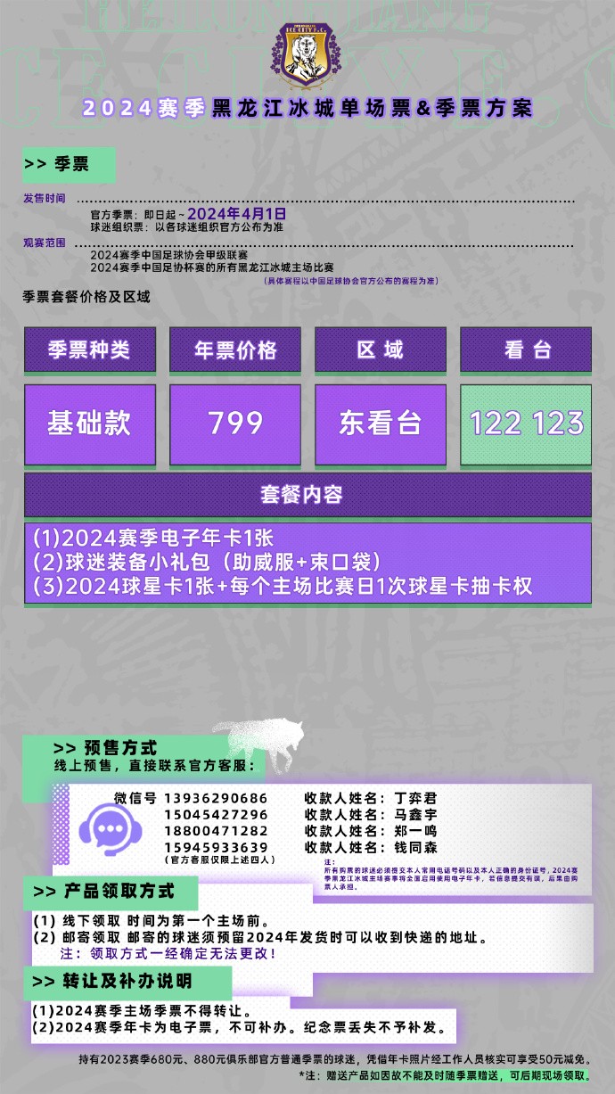 黑龙江冰城新赛季票务方案:单场普通票60,基础款季票799 shizhenguan shizhenguan2024-01-11 17:59日前,黑龙江冰城足球俱乐部在官方社交媒体发布了2024赛季俱乐部票务方案。单场票价方面,优惠票最低为3.33元,普通票价60元,价格最高的VIP票为300元。球队季票从799元至8888元不等,包含多种球迷权益可供选择。黑龙江冰城足球俱乐部票务方案展开更多
