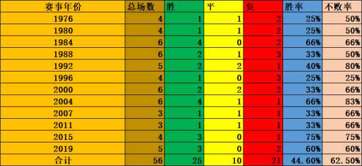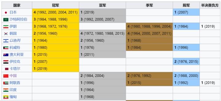 中国队自1976年首度参加亚洲杯以来,此后从未缺席决赛圈阶段比赛,已连续12次参加亚洲杯正赛,而即将到来的第13次,也是国足在本世纪第三个十年的首次大赛征途。回顾中国队历届比赛的历程,有惊心动魄的绝杀,也有令人扼腕的失利,充斥着酸甜苦辣与刻骨铭心交织着的回忆。下面就让我们用数据来一起回顾下国足在亚洲杯上的整体表现。