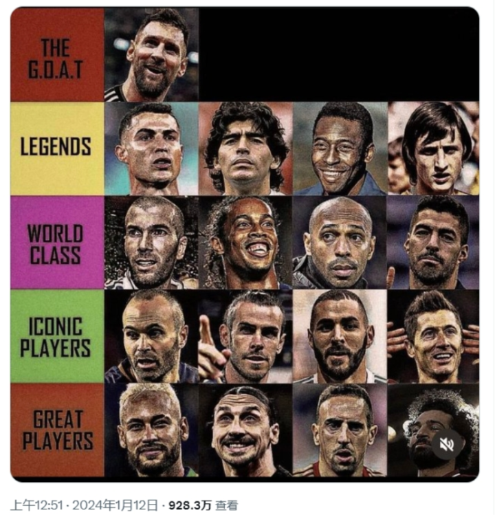 外网近日很火的一张球员分级图,在推特上已经有超9...穆夏拉拿金球_-_2024-01-12 11:01外网近日很火的一张球员分级图,在推特上已经有超900万的浏览量。你对这个分级怎么看?靠谱还是不靠谱?展开更多