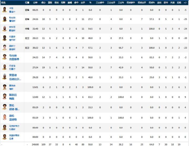 球员全场数据