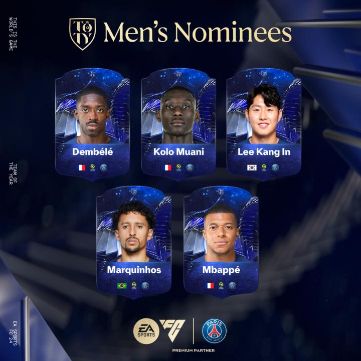 姆巴佩、马尔基尼奥斯、李刚仁、登贝莱、穆阿尼入围...巴黎圣日耳曼足球俱乐部 @懂球帝2024-01-12 17:23姆巴佩、马尔基尼奥斯、李刚仁、登贝莱、穆阿尼入围了今年TOTY年度最佳阵容! 即刻投出你的年度最佳阵容! @EASPORTS @FC_Online @FC足球世界展开更多