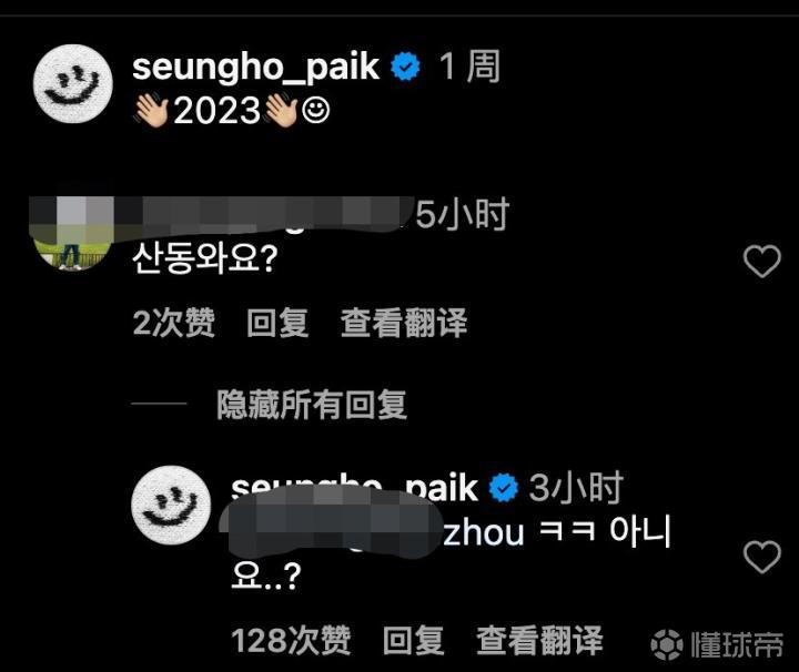 今日,有一名山东泰山球迷在白昇浩告别2023年的帖子评论区用韩语留言道:“来山东吗?”
