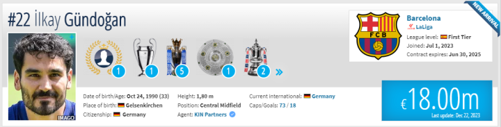 球迷爱称:郭德纲。事实上,在多特时期的京多安就已经展露他的天赋了。他也是除莱万,罗伊斯以外,那支球队里在游戏里最好的球员之一。他是德国国家队2023年度最佳球员。唯一遗憾的是2014年因伤错过了世界杯冠军。在2016年离开多特加盟曼城。跟随曼城获得了能获得的所有荣誉。随后,转会西甲豪门巴塞罗那。可以说,他是莱万以外,这支多特成就最高的球员之一。