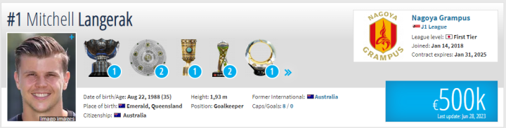由于魏登费勒实在是雷打不动,我都忘了多特还有个澳大利亚门将。朗格拉克也参加了欧冠决赛(没有出场)。他为多特蒙德效力5年,出战35场。2015年离开多特后,加盟过斯图加特,莱万特。