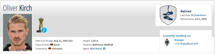 同样是没给我留下任何印象的球员,基尔希为多特效力3年时间,出场30次,1球1助攻。此外,职业生涯中,他还加盟过:门兴格拉德巴赫,比勒菲尔德,凯泽斯劳滕。