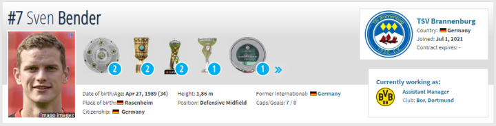 本德两兄弟的弟弟。说实话,当年在游戏里也就他一个正统后腰。为多特效力8年。出战224场,有4球11助攻。也算名宿了。2017年离开多特加盟勒沃库森,由于伤病过多,在2021年和哥哥一起早早退役。好玩的是,两人在退役后还跑到德国低级别联赛TSV Brannenburg去虐鱼腩球队。这也是他们年少时的母队。在今年和沙欣一起被任命为多特蒙德的助理教练。
