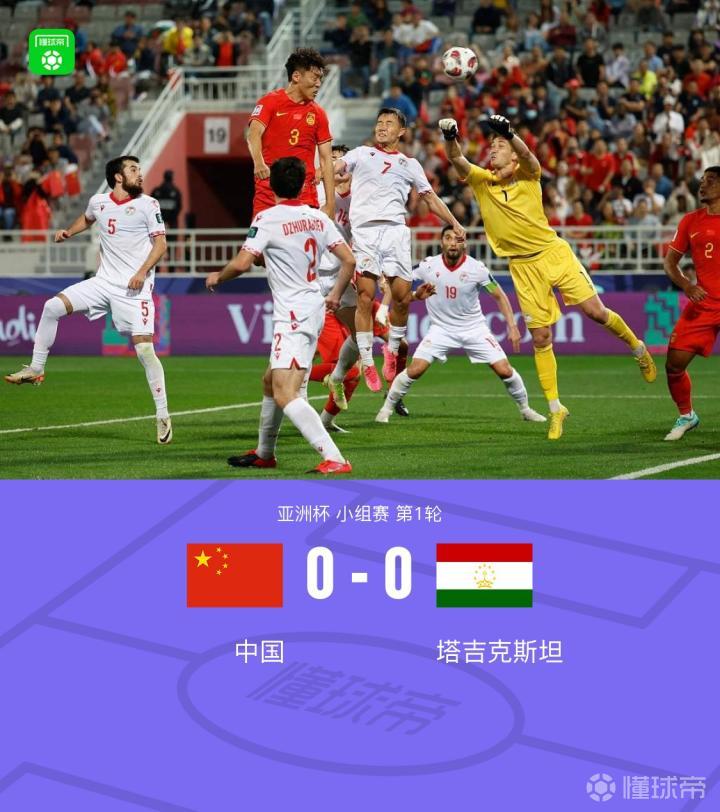 北京时间1月13日晚间22:30,亚洲杯小组赛A组第一轮,中国对阵塔吉克斯坦,本场比赛在阿卜杜拉-本-哈里发体育场进行,主裁判为沙特人穆罕默德-哈立德-胡韦什,吴曦、韦世豪、蹇韬未进入23人大名单。上半场,刘洋巧妙脚后跟过人,颜骏凌屡现神扑,贾利洛夫险破门,王秋明射门造险。下半场,武磊错失射门良机,徐新远射制造威胁,朱辰杰破门被吹,谢鹏飞险些取得进球。最终,中国0-0塔吉克斯坦。